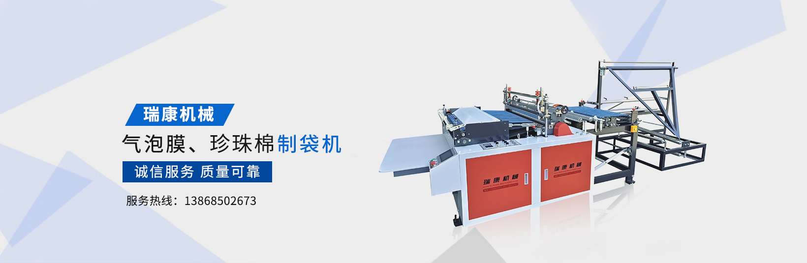 溫州瑞康機械有限公司(www_wzruikang_com.anhobb.cn)主要生產氣泡膜機,快遞袋制袋機,包裝機,制袋機等設備。瑞康機械是國內生產塑料軟包裝系列機械設備的專業廠家之一。產品質量可靠、誠信服務,深受用戶好評,市場占有率節節攀升。